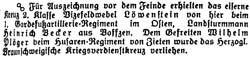 Dillenberg, Iwan, * 26.1.1884 in Höxter. Nach Gymnasialbesuch Kaufmann. Als Gefreiter im Inf.-Reg. 56, 8. Komp. (EK I und II) nach schwerer Verwundung am 11.4.1918 am folgenden Tag auf dem Wagenhalteplatz in Moreuil (Nordfrankr.) gestorben.